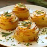 Indulge in the delightful experience of Crispy Potato Stacks, a gourmet side dish that brings elegance to any meal. These perfectly layered potatoes are seasoned with a blend of spices and baked to golden perfection, offering a satisfying crunch on the outside while remaining tender inside. Whether served at a special dinner or enjoyed as a comforting snack, these crispy delights are sure to impress your guests and family alike. Easy to prepare with just a few ingredients, they pair wonderfully with grilled meats, fresh salads, or can be savored on their own. Elevate your dining experience with this irresistible recipe that will leave everyone raving!